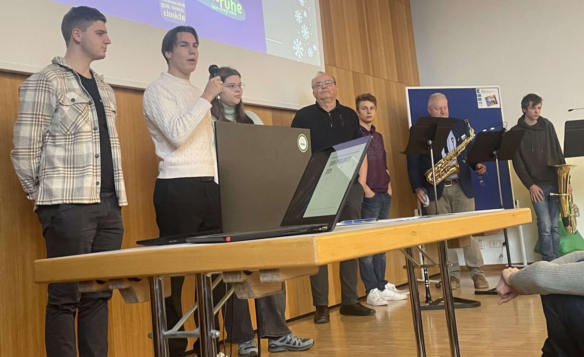 Bevor jedoch das umfangreiche Angebot entdeckt werden kann, versammeln sich alle Schülerinnen und Schüler mit ihren Lehrkräften in der Aula, um sich gemeinsam auf den Tag und die Weihnachtszeit einzustimmen.